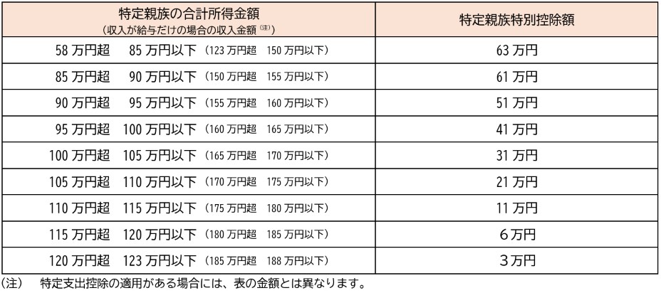 ※3 所得税における、特定親族特別控除額は次の表のとおりです。